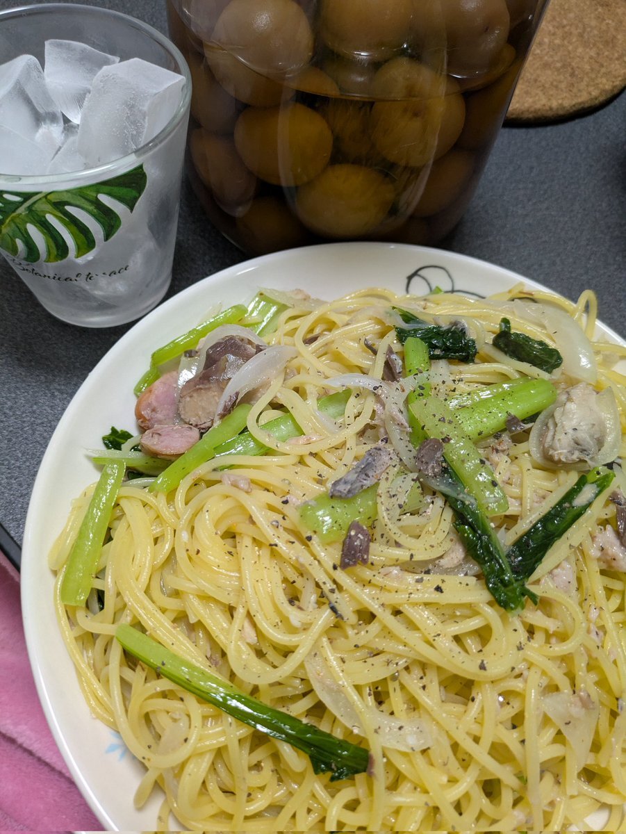自家製梅酒おいしー😋材料は梅とハチミツとスピリッツのみ。 夜はサバと小松菜の栄養たっぷりペペチ。(量バグってます) 愛猫の圧!! #GLAY猫部 #GLAY野菜部 pic.x.com/U4PuyNSM3S