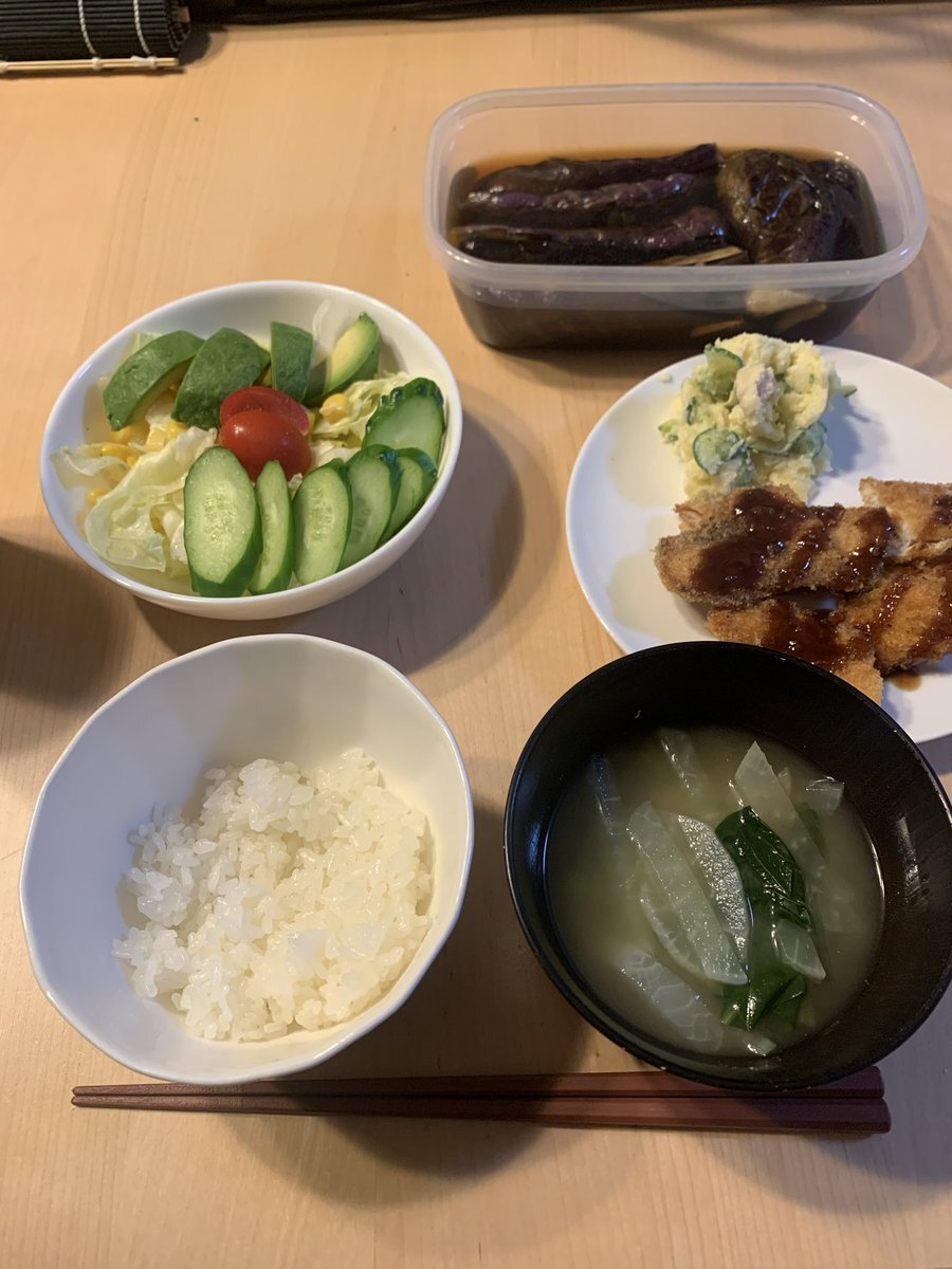 本日の夕飯🍽️ ⭐︎ササミフライ ⭐︎ポテサラ(昨日の残り) ⭐︎ナス焼き浸し ⭐︎サラダ ⭐︎ご飯、味噌汁 ナスがやっとあと3本くらいになった😆 浸す液は東◯の麺つゆ☝️万能つゆ😊 #GLAY野菜部 pic.x.com/4XAOEqaG8q