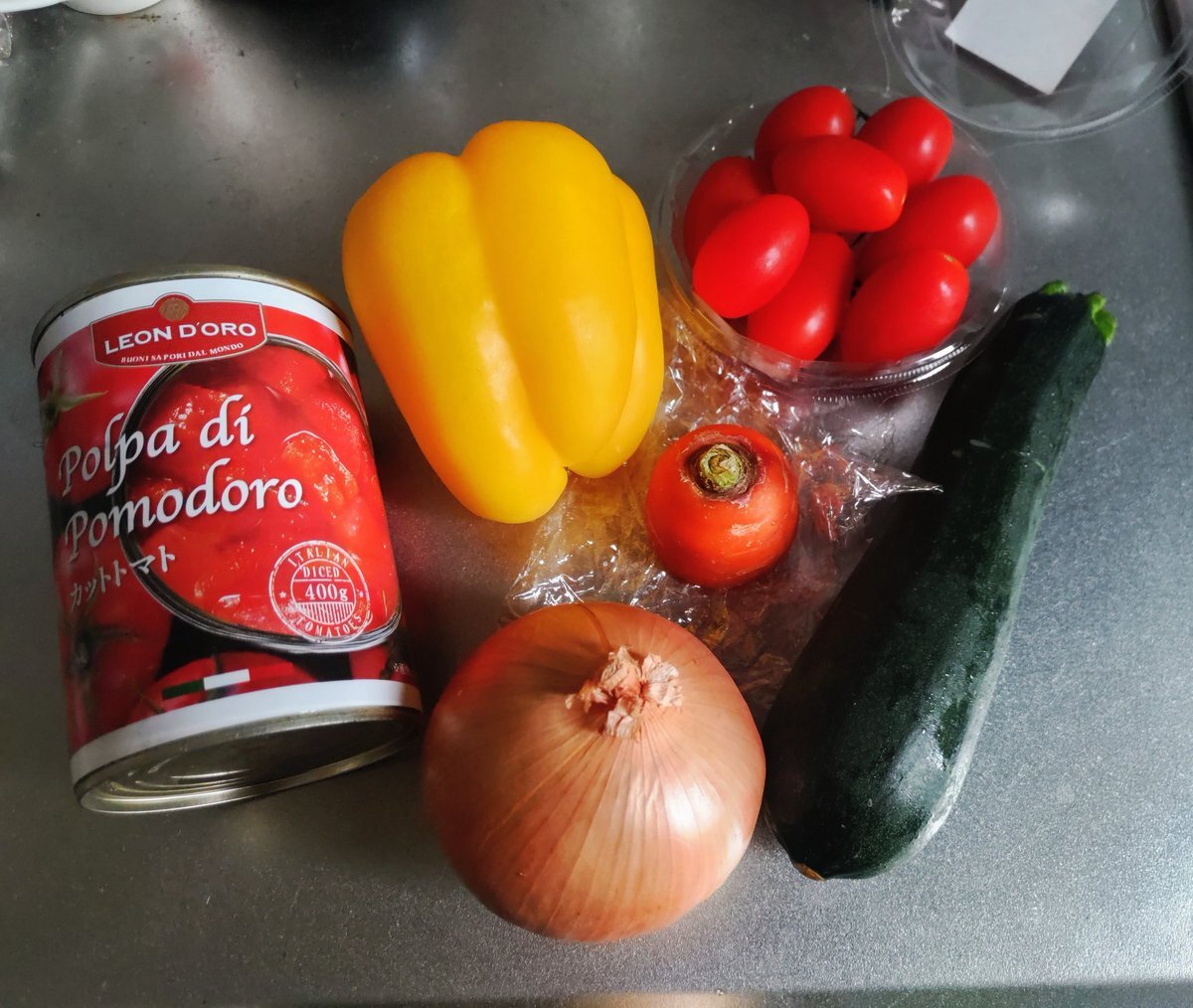 トマト🍅 ズッキーニ🥒 玉ねぎ🧅 パプリカ🫑 トマト缶🍅 人参🥕 人参一本あると思ったのに欠片しかなーい🤣 コレに鶏肉、スパイスを加える🫡 #GLAY野菜部 pic.x.com/eBiyi6Y10b