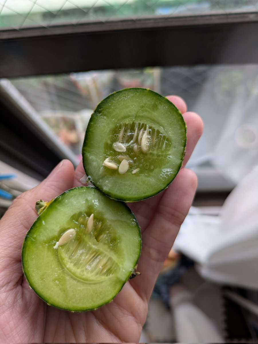 あらビックリ😳‼️かぼちゃだと思ってたらメロンだったよ🍈しきなちゃん、正解っ🤣🤣👍 ベランダでメロン育てられるなんて!きゅうりとメロンの間くらいの青臭い味😵 #GLAY野菜部 pic.x.com/R3msAxJVfs x.com/K9reVmZLOA7638…
