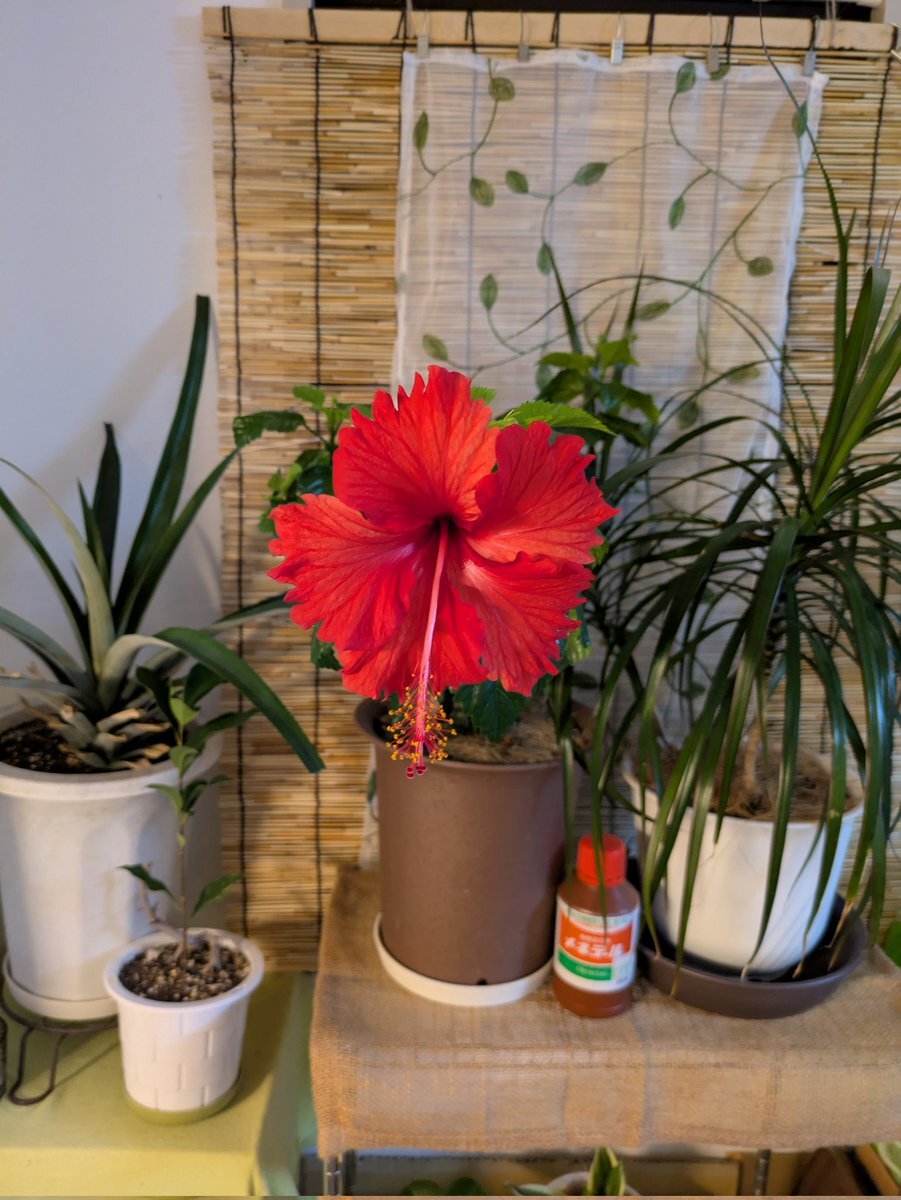 プランターが空いたら次はニンニクを植えます🧄室内へ避難させたハイビスカスが咲いたよ🌺 #GLAY野菜部 pic.x.com/aBCagubPIt