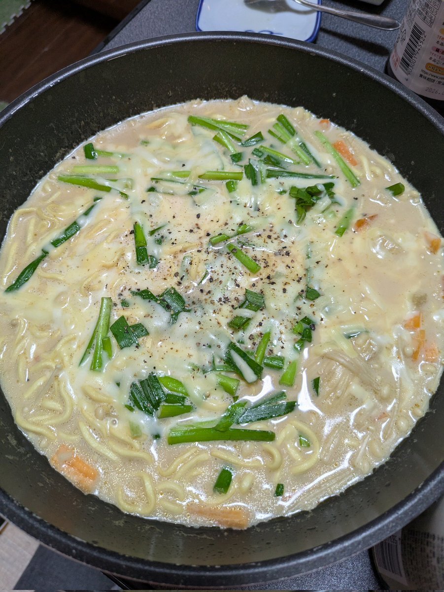 休日のお昼ご飯の記録📝 この前の豆乳スープの豆乳の残りを使い切りたくて、旦那に作ってもらった🍜(麺系料理は旦那作が圧倒的に多い)具材の野菜は少なめだったけど、ピリ辛で美味しかった😋ご馳走様でした🙏✨ #GLAY野菜部 #野菜少なめ pic.x.com/x6TZAzJcYZ