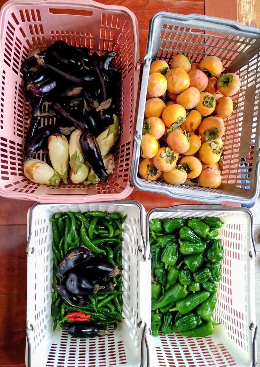今週の収穫。 そろそろ夏野菜は終わりかなー。 今年は柿が豊作。 これで1/3くらいしか収穫出来ていません😂 近所のオジサマが、ご自宅の柿のついでに消毒してくれています。 本当に感謝しかありません。 #家庭菜園 #週末農業 #GLAY野菜部 pic.x.com/1gTgx06uwI