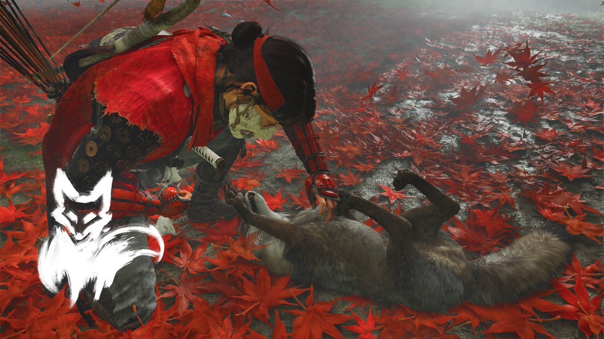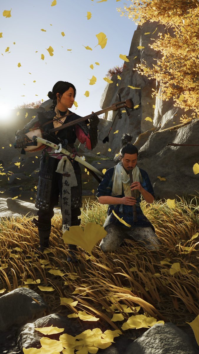 こいつ仁さんと同じ剣術の型を使ってきて手強いけどなんだか戦ってると不思議と嬉しい おまけにこの紅葉の下での戦いってあの最後の戦いのシーンと似ててヤバい(*´ω`*) いい日和だ #GhostofYotei pic.x.com/pIxUBJC5rA