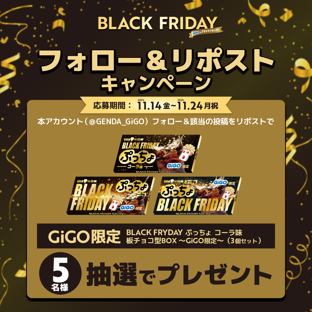 全国のGiGOグループのお店で 「GiGOのブラックフライデー」開催中🖤 🏴開催期間:11月1日~11月30日🏴 ◼️黒◼️を基調としたデザインの GiGO限定ブラックフライデープライズ第2弾がいよいよ登場!!