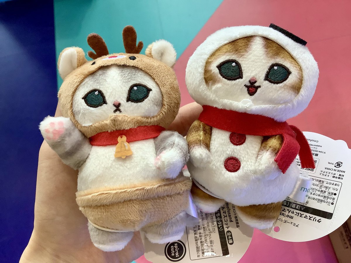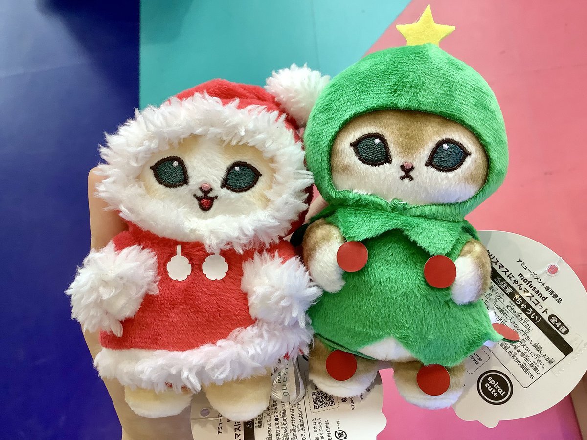 新景品です✨ 『#mofusand クリスマスにゃんマスコット』 稼働しました〜! サンタさんやトナカイなどの衣装を着た めちゃめちゃかわいいにゃんこマスコット💕 ぜひお迎えしちゃって下さいませ😌 #GiGO帯広稲田 pic.x.com/rsUabZALLE