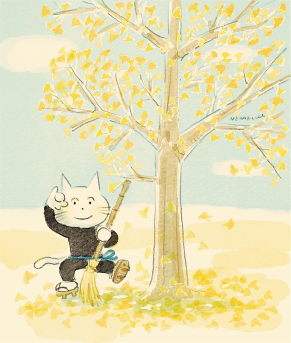 おでかけですか にゃにゃにゃのにゃ #みんなで楽しむTwitter展覧会 #芸術同盟 #11月 #イラスト好きな人と繋がりたい #イラスト #銀杏 #ginkgo pic.x.com/hJT8JmyBtw