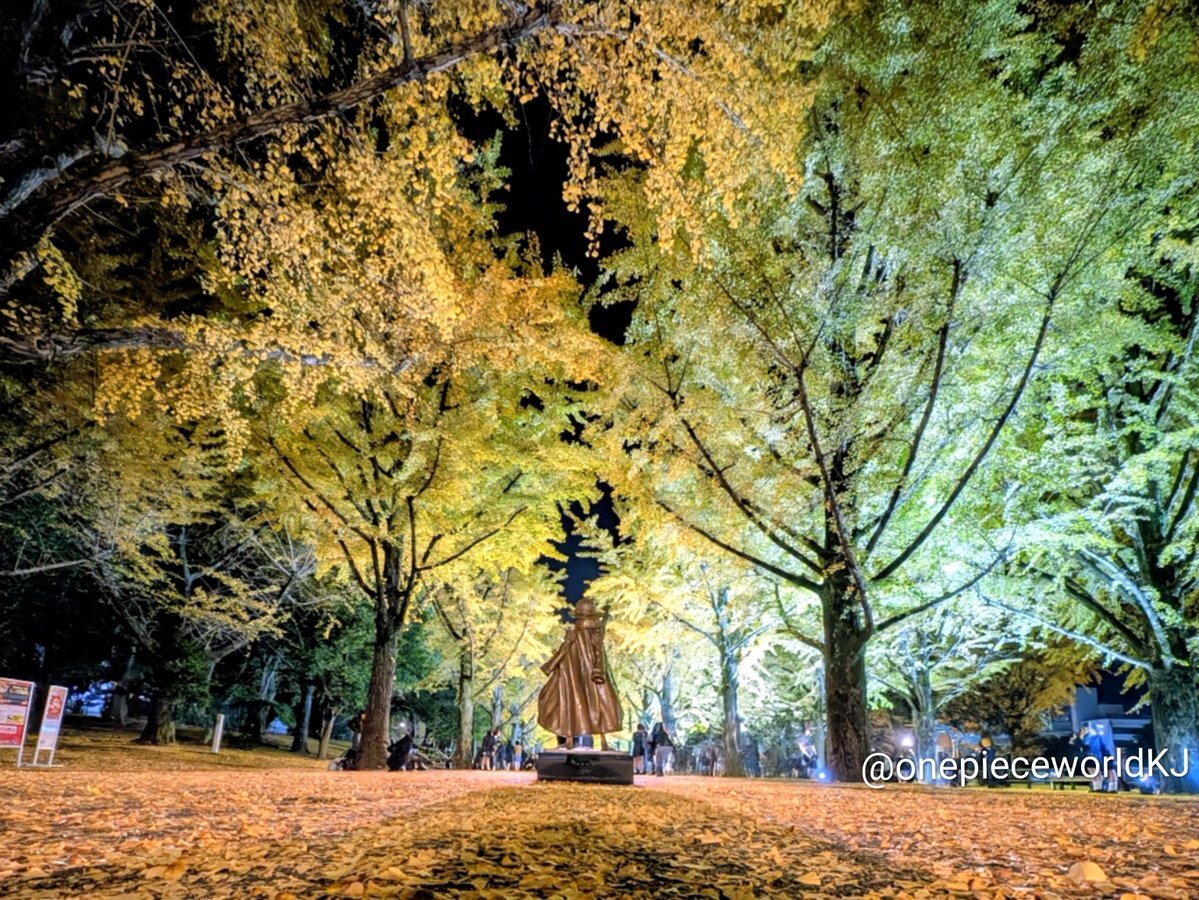 夜の熊本県庁のイチョウ。随分色づいて見頃になっています。 Ginkgo around the Luffy statue at night. The leaves turn yellow and beautiful. #時々ルフィ #ワンピース #ルフィ #尾田栄一郎 #ONEPIECE #熊本 #Kumamoto #luffy #EiichiroOda #イチョウ #ginkgo #ライトアップ #熊本県庁プロムナード pic.x.com/7RbjqYHQZT