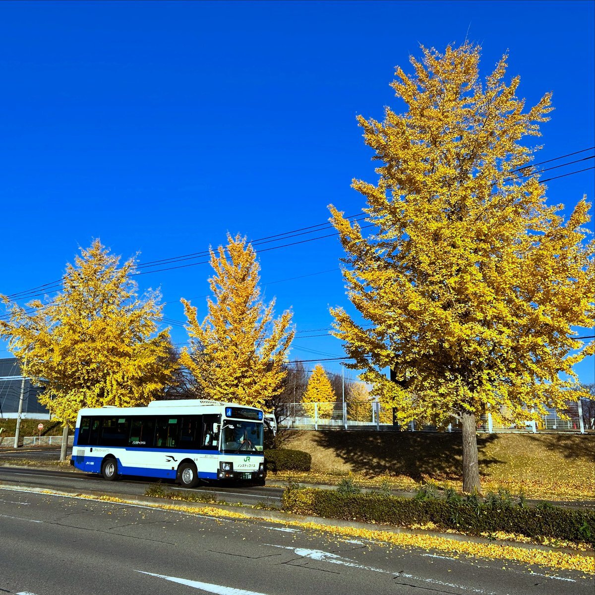 【栃木県】 #那須塩原 #県道55号線産業通り 2️⃣ >> 銀杏は、銀行か🤔 #ginkgo (ぎんこー) ・ JRバスと銀杏並木の紅葉 #ゆーばす #井口工業団地 #銀杏 #紅葉 #井口工業団地の銀杏並木が紅葉 #西那須野 pic.x.com/XOULIkZd2v