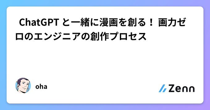 👇Zenn に記事を書いた zenn.dev/bubbles/articl… 「💬 ChatGPT と一緒に漫画を創る! 画力ゼロのエンジニアの創作プロセス」 #zenn #SHIBUYA2036 #Generative #AI #生成AI #GenerativeAI #画像生成AI #AI画像生成 #AIGenerated #AI画像 #AI生成画像 #AIイラスト #AIArt #AIArtwork #ChatGPT #DALLE x.com/Bubbles_877/st…