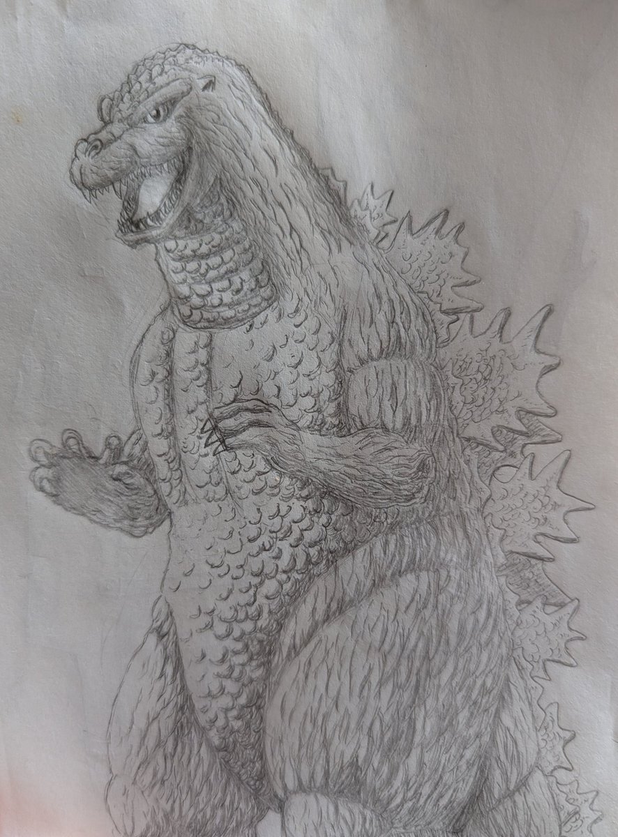 以前、スケッチしたラドゴジに着色。 ibisPaintで指で塗ってみました。 スケッチブックとスマホあれば十分イラスト描けますな。 #ゴジラ #Godzilla pic.x.com/R9cxOlnBiR x.com/kaijutou/statu…