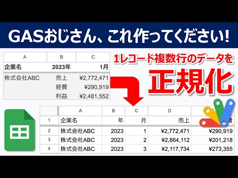 【スプレッドシート】1レコード複数行のデータをGASで正規化【GASおじさん、これ作ってください】 #GoogleAppsScript youtu.be/aYuaZbM8hf0
