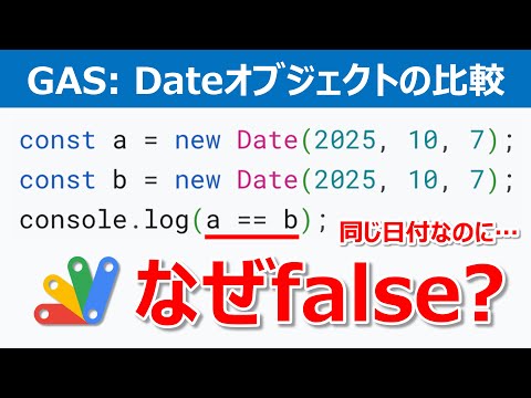 Dateオブジェクトの比較 (GAS/JavaScript) #GoogleAppsScript youtu.be/q2dC8lyCixo