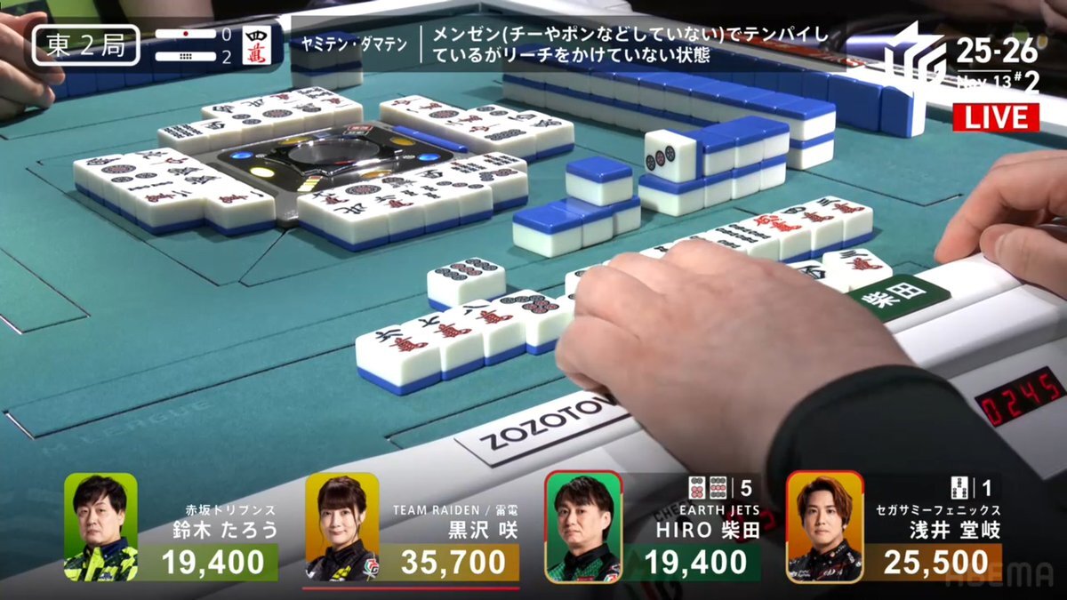 【11/13 2G 東4】 #HIRO柴田 と #浅井堂岐 が 2人聴牌で流局‼️ 視聴は👇 @ABEMA で視聴中 ▷ abema.go.link/fmgxW #Mリーグ pic.x.com/9l4oerjFcy