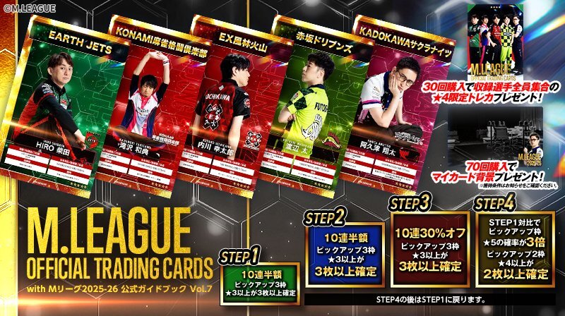 / 🀄️ #Mリーグトレカ 「Mリーグトレカ with Mリーグ2025-26公式ガイドブック Vol.7」発売! \ #HIRO柴田 #渡辺太 #内川幸太郎 #阿久津翔太 #滝沢和典 公式ガイドブックに掲載の選手情報がトレカに登場🎉 プロフィールや麻雀観などたっぷり収録! お得な割引&特典も m-league.orical.jp pic.x.com/4fhD0vbwHW
