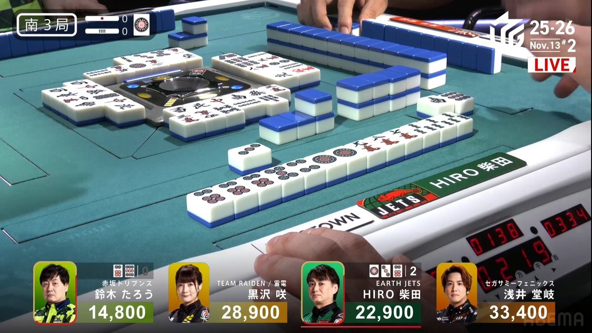 【11/13 2G 南3】 親のJETS #HIRO柴田 が アガって連荘‼️ 視聴は👇 @ABEMA で視聴中 ▷ abema.go.link/fmgxW #Mリーグ pic.x.com/djEXznGKVw