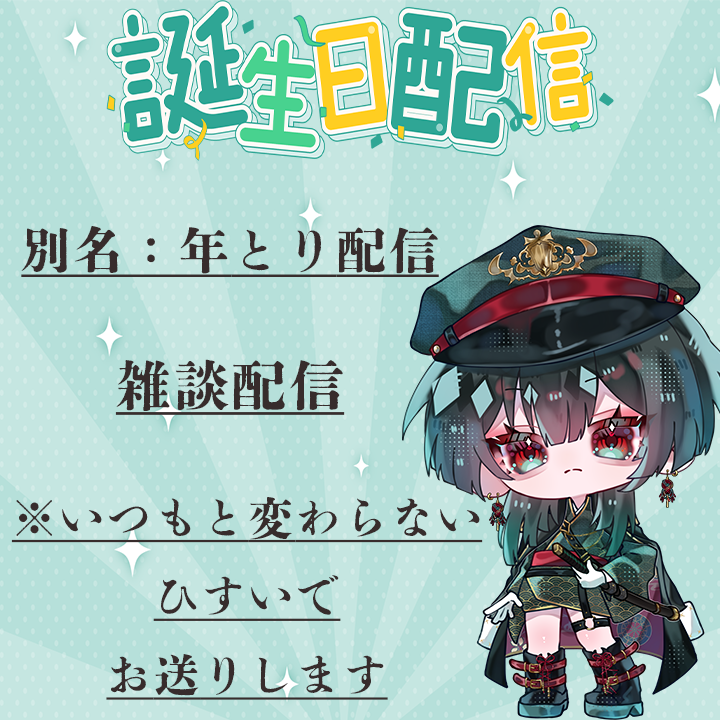【年とり配信】誕生日配信!いつもと変わりません… #新人歌い手 #歌い手 #誕生日配信 #ひすい #hisui showroom-live.com/r/07aee9568595… #SHOWROOM pic.x.com/XBo6eXgVha