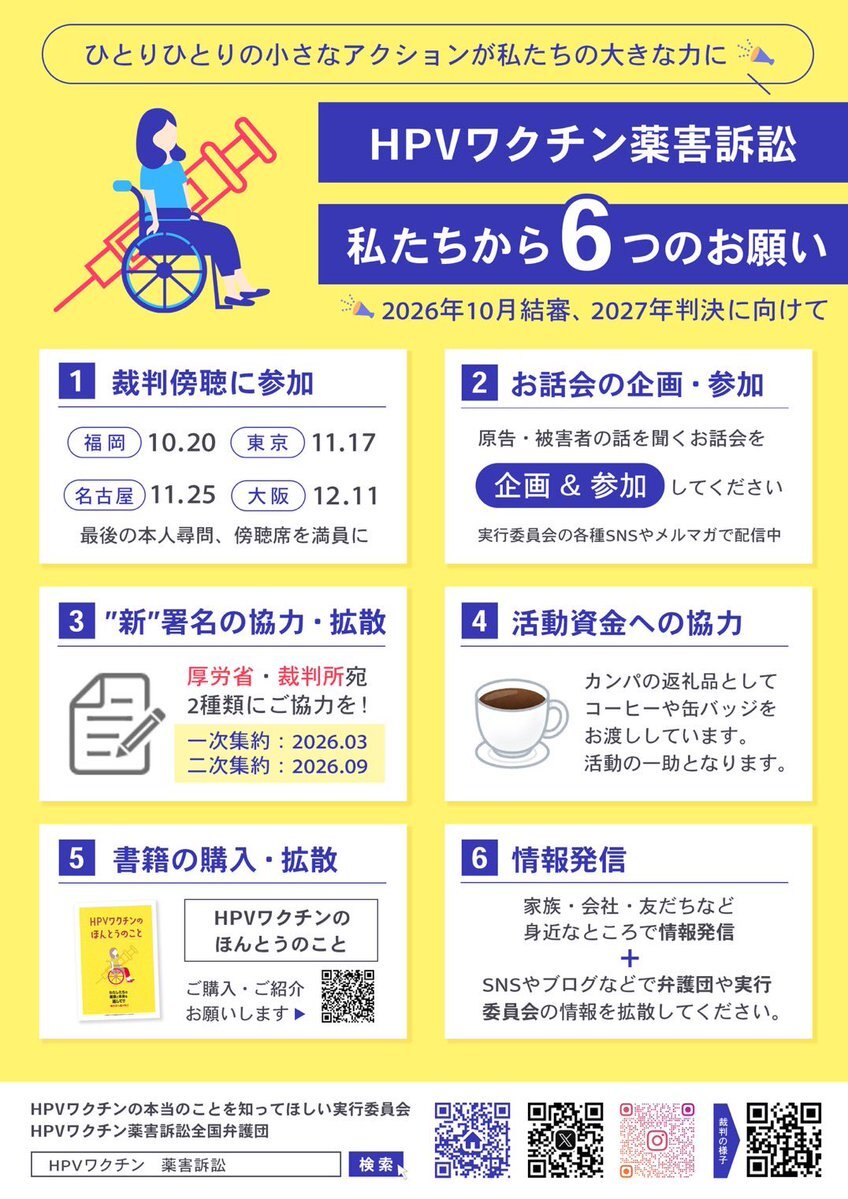 一つでもご協力いただけるとHPVワクチン薬害訴訟の支援になります。 よろしくお願いします🙏 #HPVワクチン #子宮頸がんワクチン #ワクチン被害 #副反応 #副作用 #後遺症 #薬害 #ホンコト #HPVワクチンの本当のこと pic.x.com/Jf3VYMEap3