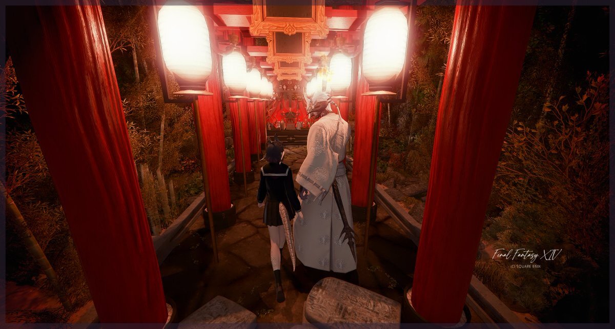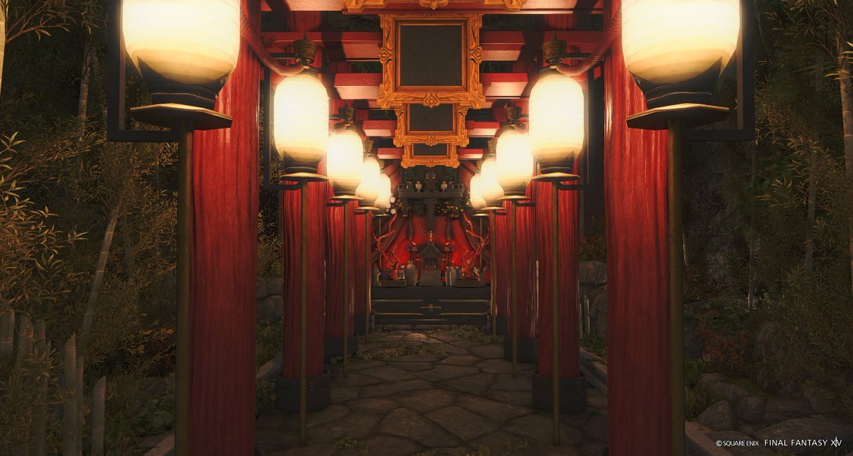 「とおりゃんせ」⛩️ 行きはよいよい 帰りは…?? たくさんの鳥居のあるスタジオを作りました。 家具の特性上カメラ酔いしやすいのでご注意ください。 🏷️#IMG_std Gaia/Fenrir/Lavender/19-12 #FF14Housing #FF14ハウジング