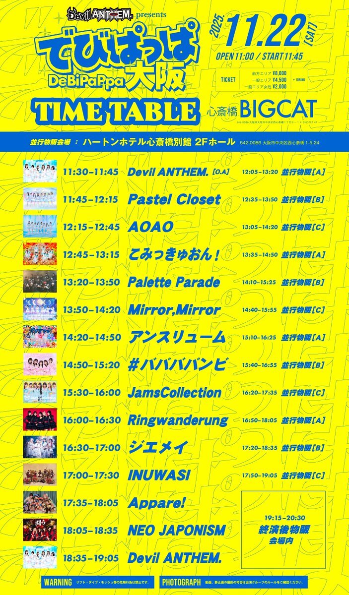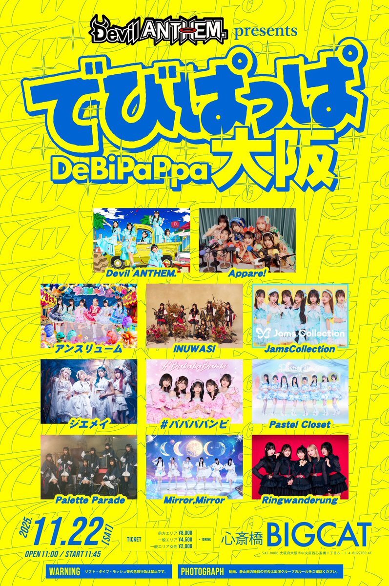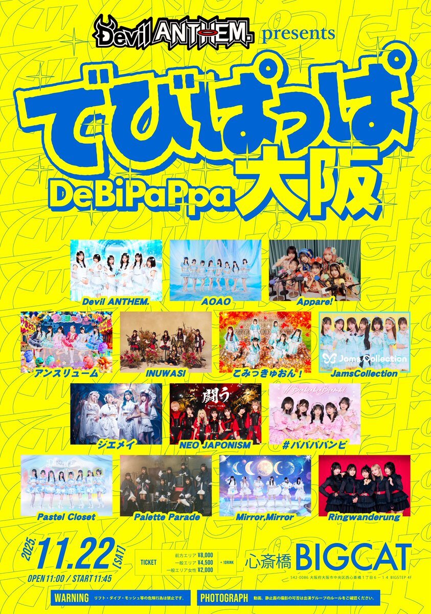 🐶🦅大阪ライブ決定 Devil ANTHEM. Presents でびぱっぱ大阪 11.22(土) BIGCAT OP11:00 ST11:45 先行抽選9.21(日)23:59まで 🎟️ticketdive.com/event/JWggWq06… 前方¥8,000 一般¥4,500 女性¥2,000 ▶︎狗鷲券遠征割あり(販売数限定) 大阪ライブ決定⚡️ 是非お越し下さい! #INUWASI