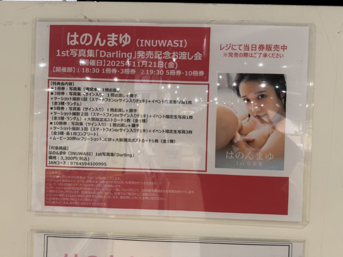 本日は『はのんまゆ(INUWASI)1st写真集「Darling」 発売記念お渡し会 in 大阪』にお越しいただきありがとうございました! 今日の真っ白はのんさん可愛かったですね☃️❄️ ポイントは『女は黙ってデカリボン』だそうです(強) #はのんまゆ #INUWASI #はのんまゆ1st写真集 @HANON_INWS @INUWASI_O pic.x.com/15Zi9ESUFR x.com/INUWASI_O/stat…