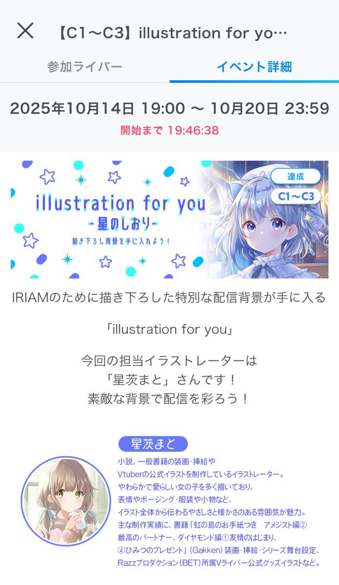 💫お知らせ💫 一日お疲れ様です! 今回こちらのイベントに参加いたします🤔 背景欲しいのでぜひ協力してくれると嬉しいです✨ もしご協力いただけた方には今回復帰記念限定復刻なしの景品をお渡しします! 詳細は後日改めて載せます🙇🏻‍♀️ 後日の理由は現在体調が悪いからです… 本日配信もお休みです😭