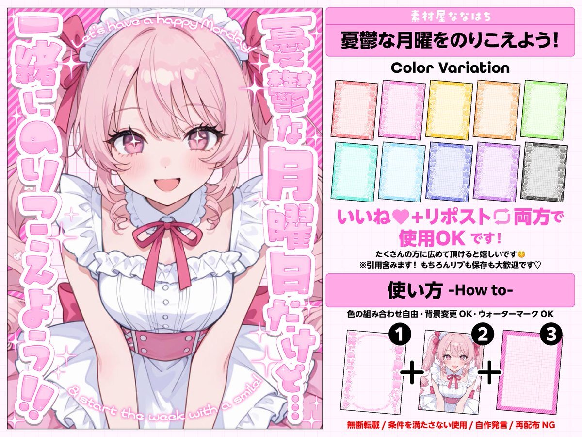 ˚.✧ 🎀 フリー素材 🎀 ✧. ˚ ⋰ ˚*.꒰ 月曜日のはじまりだよ💓 ꒱.*˚ ⋱ いいね💗&RT🔄両方で使用 🆗❕ カラバリ4色❣️リプ欄から保存どうぞ ✨ #Vtuber素材 #おはようVtuber素材 #Vライバー素材 #IRIAM素材 #Vtuberフリー素材 #むにフリー素材 🍬素材も販売中🍬munipop.booth.pm