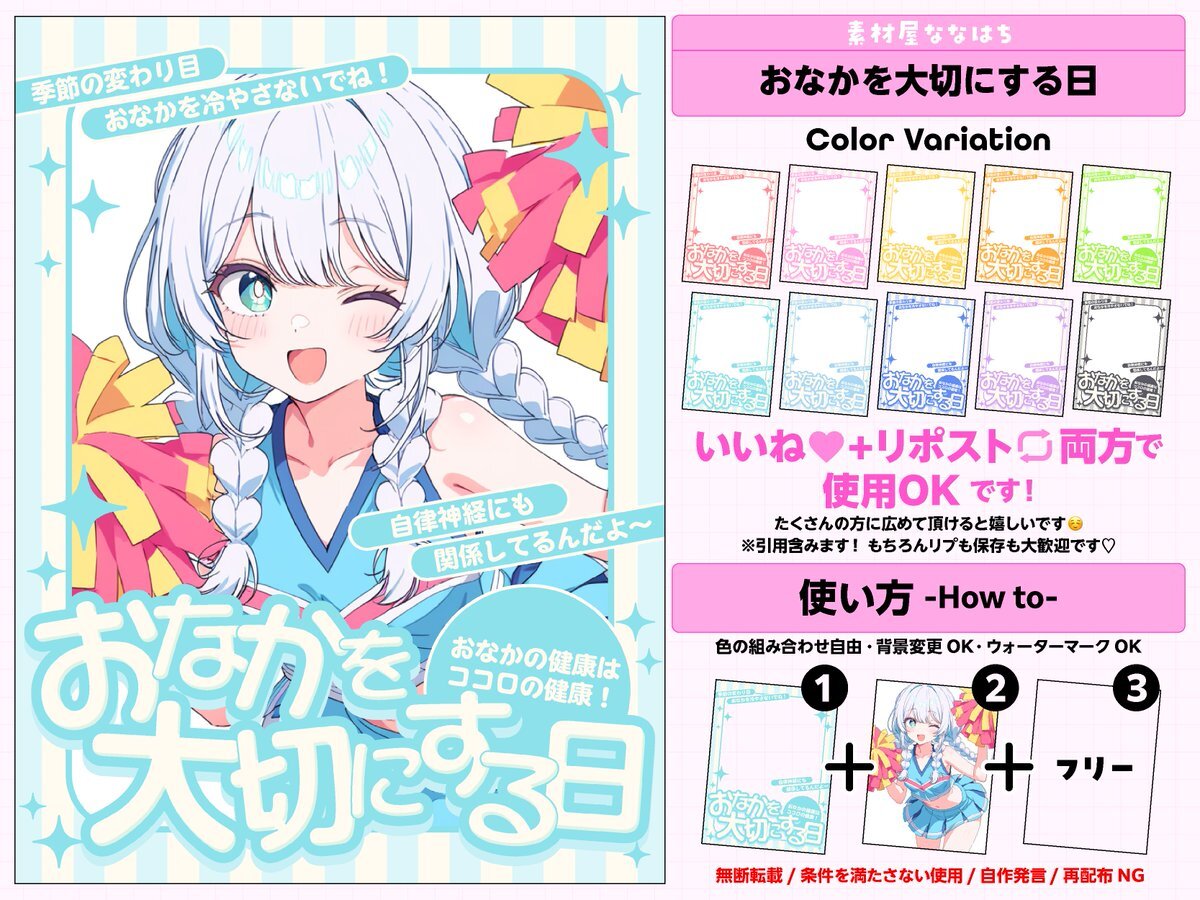 10月7日は #おなかを大切にする日 ✨ ⚠️いいね🩷とリポスト🔄で使用OK❣️ カラバリ10色✧︎*。 ツリーにつなげます🐝⋆゜ #VTuber素材 #素材屋ななはち #おはようVTuber素材