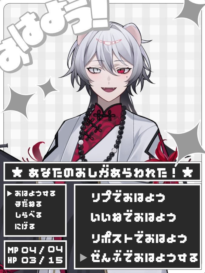 #おはようVライバー よぉ!おはよー! 今日も筋トレがんばるんだァ! みんなは、今日は何を楽しむのをがんばるんだァ? #立ち絵チャレンジ公開 も、イリアムのフォローだけになったから、よかったらぽちりとしてほしィぞ!! #IRIAM準備中でも推されたい #IRIAMライバーさんと繋がりたい