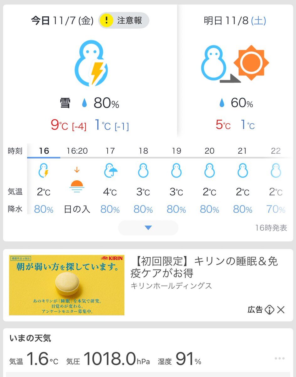 えー、こちら北海道。 お天気マークがおかしな事になってます⛄️⚡️ 本州の皆さん、お打ち合わせがてら北海道来ませんか?🥰 #SES #IT案件 #BP募集 pic.x.com/ykAkkREpv2