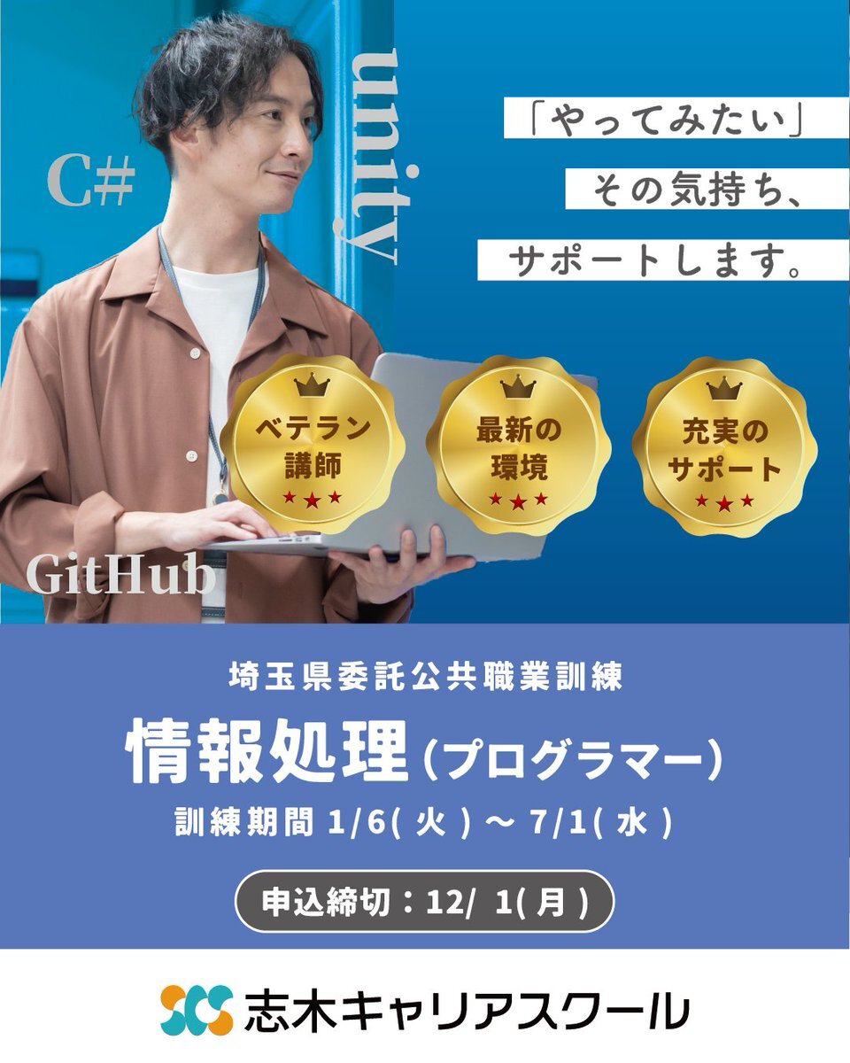 🎮✨Unityで“作る”楽しさを体験! ゲームやアプリ制作を通して実践スキルを習得💻 無料で学べるIT講座🎓説明会で詳しくご案内中🌸 締切👉12月1日(月) 詳細はこちら👇 shiki-sate.com/202601js/ #Unity #ゲーム開発 #プログラマー #職業訓練 #IT転職 pic.x.com/fOGfZREgnh
