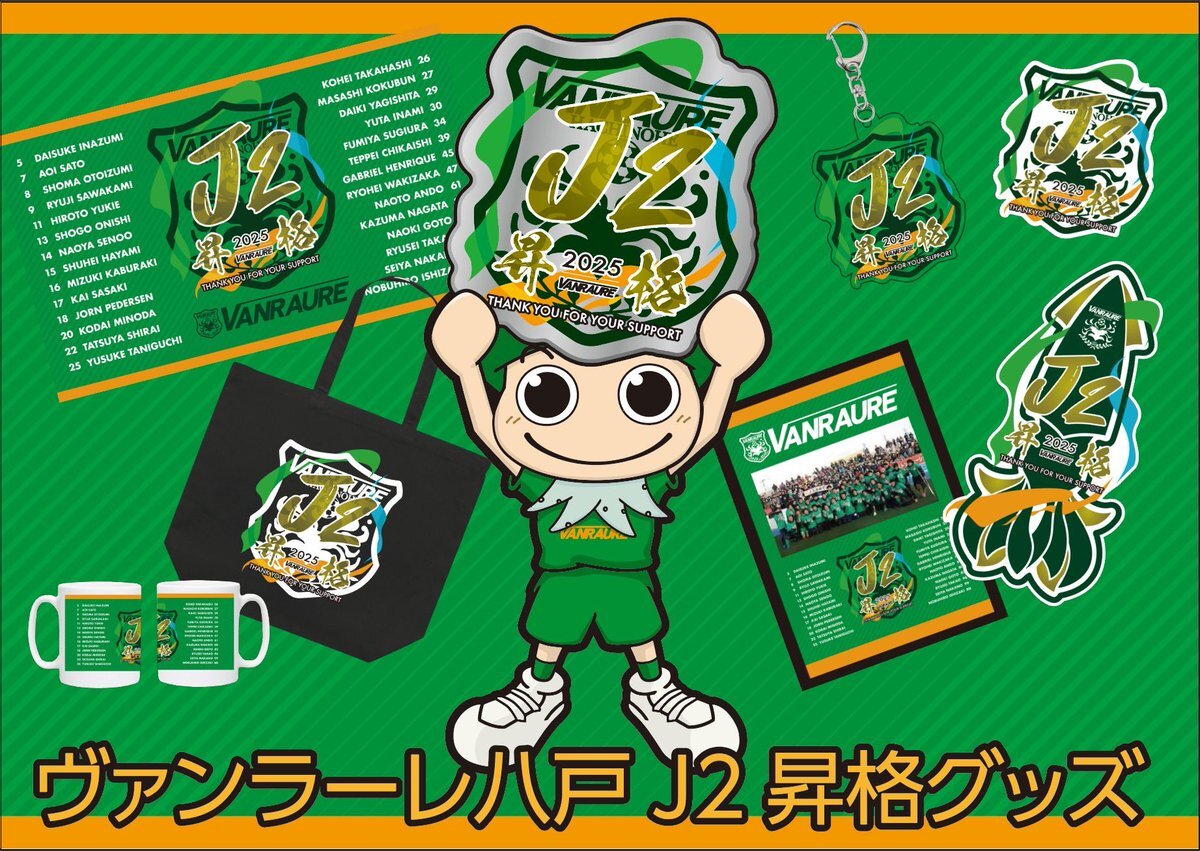 悲願のJ2昇格が決定いたしました! 皆さま、全緑の熱いご声援いただき誠にありがとうございました!! J2昇格記念グッズを受注販売いたします。 この後19時よりオンラインショップにて受付開始です🙋🏻♀️ ぜひ記念にお求めください! #ヴァンラーレ八戸 詳細は⬇️ vanraure.net/archives/718553