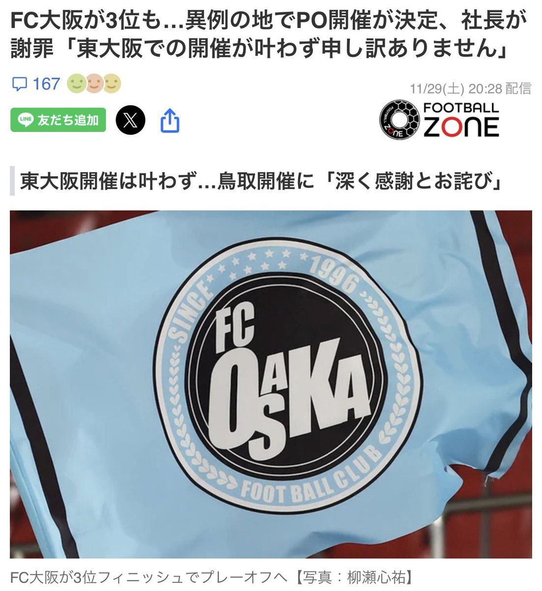 鳥取開催については、経緯を説明しないとダメだと思いますよ。 #FC大阪 #J3 #Jリーグ x.com/FCosakaOfficia…