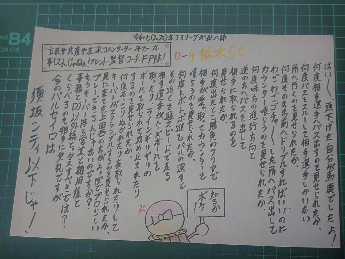 本日のパルセイロを見た上で描きました、 これがヘイトスピーチ云々と言うならどうぞ 法務局なり 立民や共産の事務所なり 市民団体の事務所なり 人権派弁護士の事務所なり 裁判所とかに飛び込んで下さい。 丸一年かけてコレなんて寧ろ犯罪レベルです。 #J3 #長野パルセイロ pic.x.com/BRJGdZlOXh