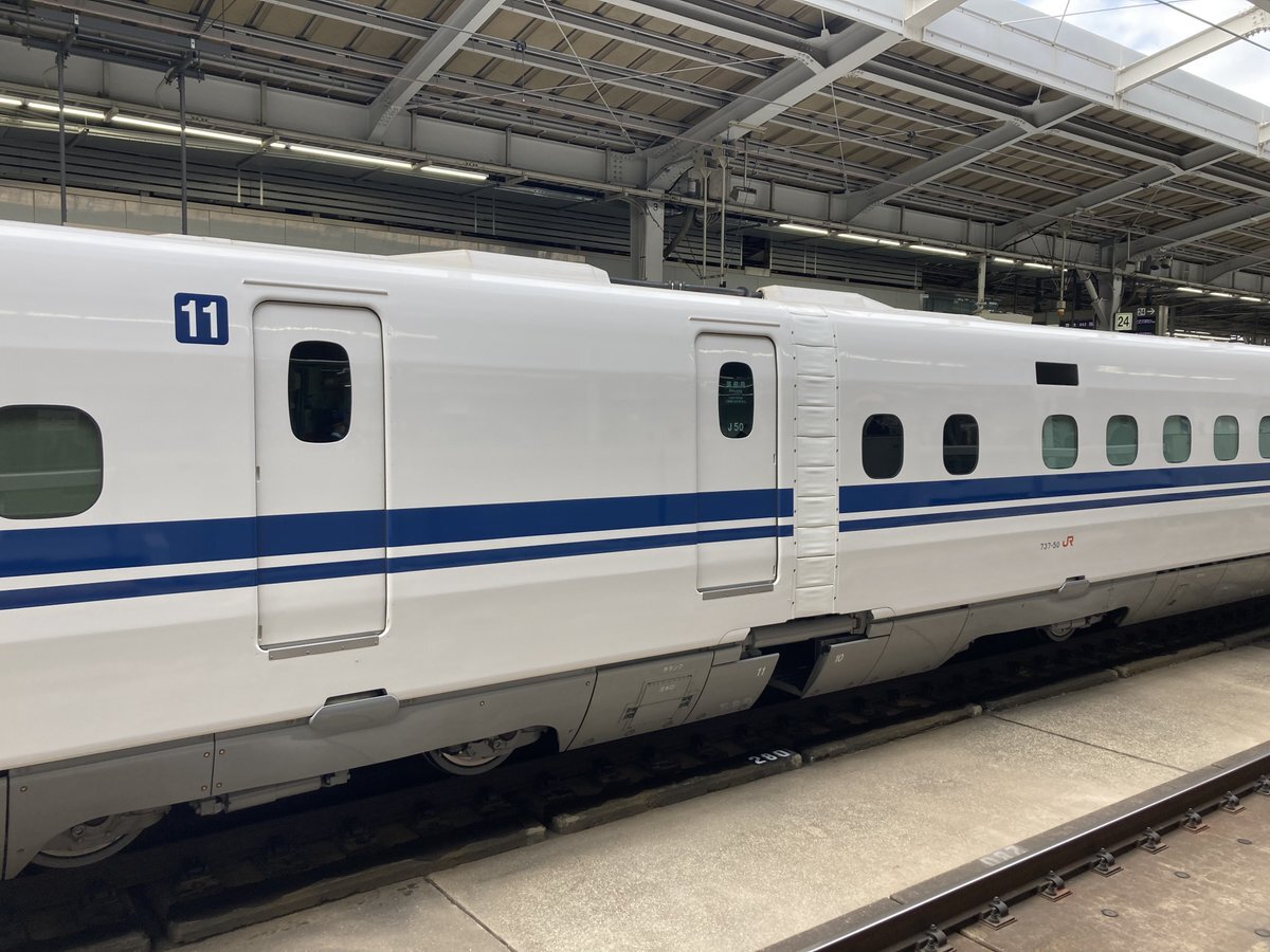N700S H6編成 日立製 25-11 10号車の謎の窓、保護シート(?)が 貼られていますが車内に何かあるように見えますね それと前回のH5編成より定員が1名 増えていました 2025.10.15