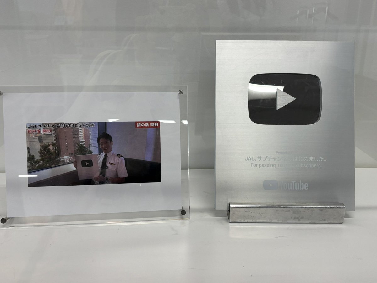 JALのスカイミュージアムへ✈️念願のサブちゃん銀盾を拝んで🙏🏻クボケンさんのB-737、和田さんのA-350の機体も近くで見る事ができました☺️ #JALサ部 #JALサブチャンネルはじめました pic.x.com/EhMxc1NTWp