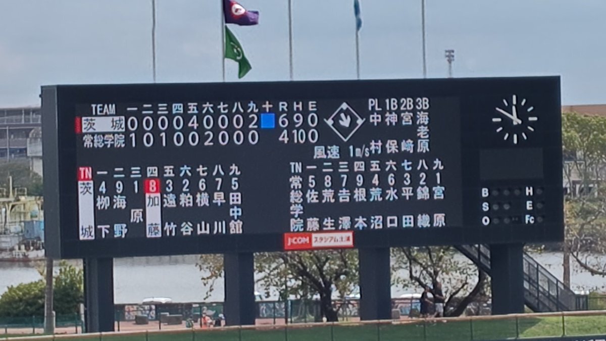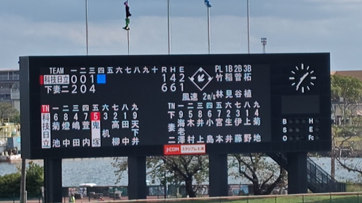 秋季茨城県大会3回戦 #科技日立 1-6 #下妻二 (4回) 科)田中-高柳 下)上野-生井 下妻二が適時打3本なとでこの回4点追加 暑さ的には給水タイムあっても良さそうです #高校野球 #茨城 #センバツ #JCOMスタジアム土浦 pic.x.com/iROhvdxMzi