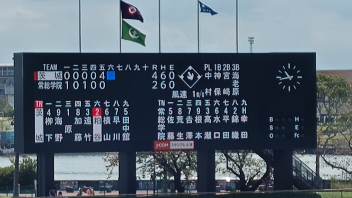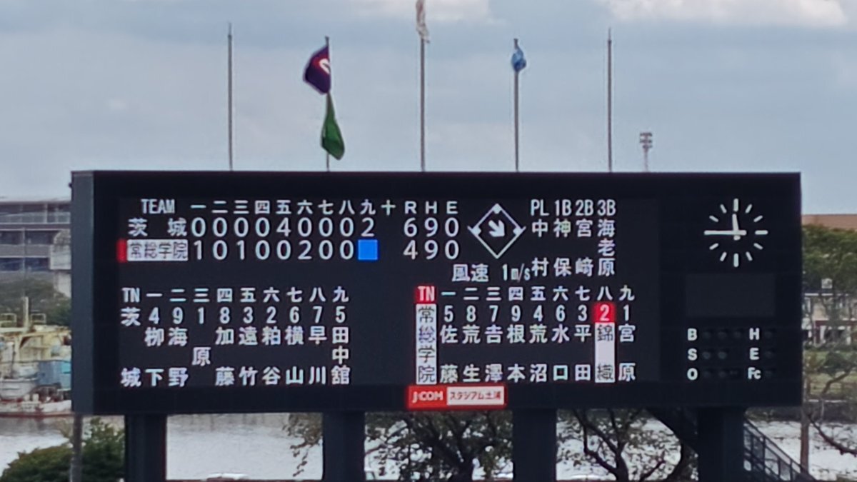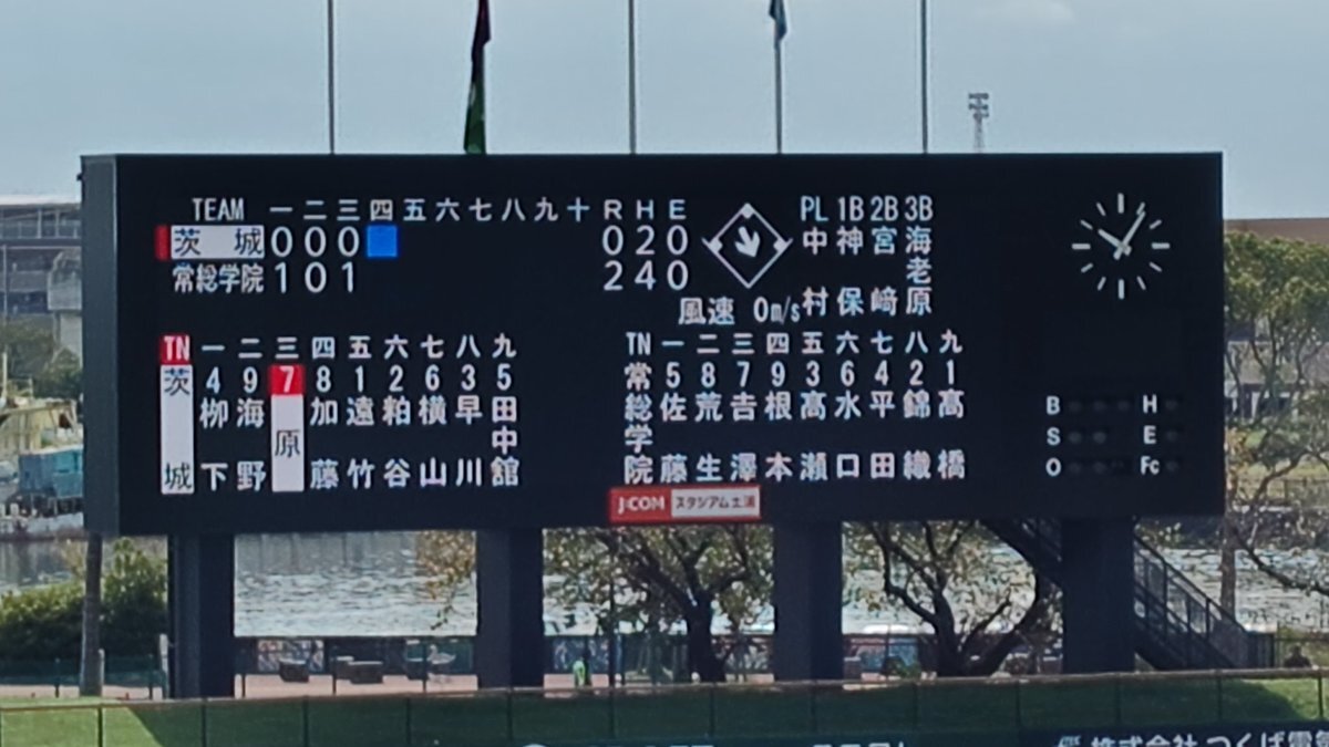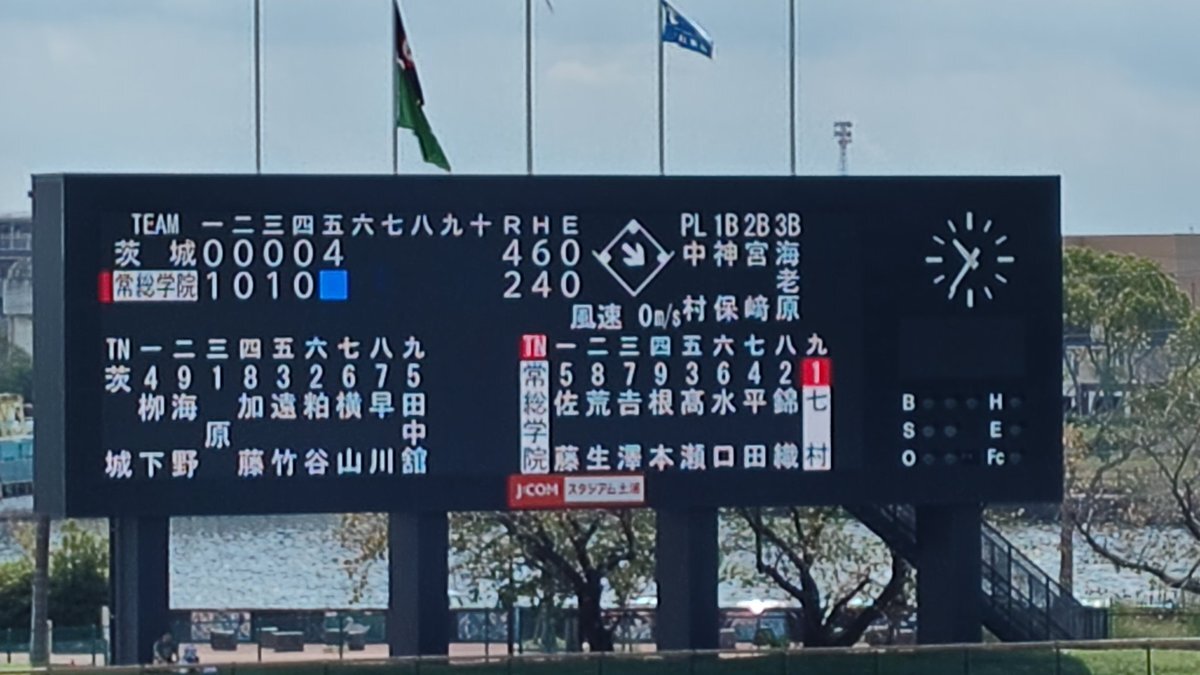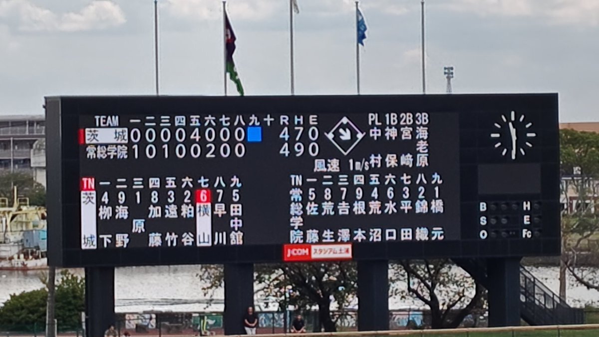 秋季茨城県大会3回戦 #茨城 4-4 #常総学院 (7回) 茨)遠竹(3)、原-粕谷 常)高橋(4.1)、七村(.2)、橋元-錦織 錦織くんの2点適時2塁打で常総学院が追い付く #高校野球 #茨城 #センバツ #JCOMスタジアム土浦 pic.x.com/FI0nUp7Jnb