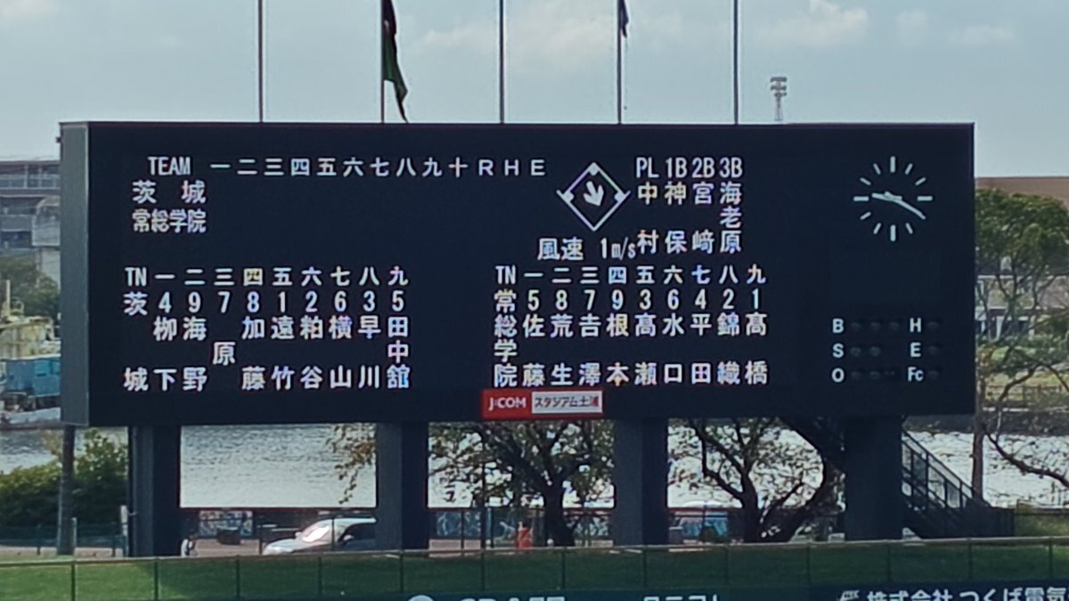 秋季茨城県大会3回戦 #茨城 6-4 #常総学院 (9回裏) 茨)遠竹(3)、原-粕谷 常)高橋(4.1)、七村(.2)、橋元(3.0)、宮原-錦織 その後、2死23塁から海野くんの内野安打で2者生還し茨城が2点リードで9回裏へ #高校野球 #茨城 #センバツ #JCOMスタジアム土浦 pic.x.com/lRoT32DjCF