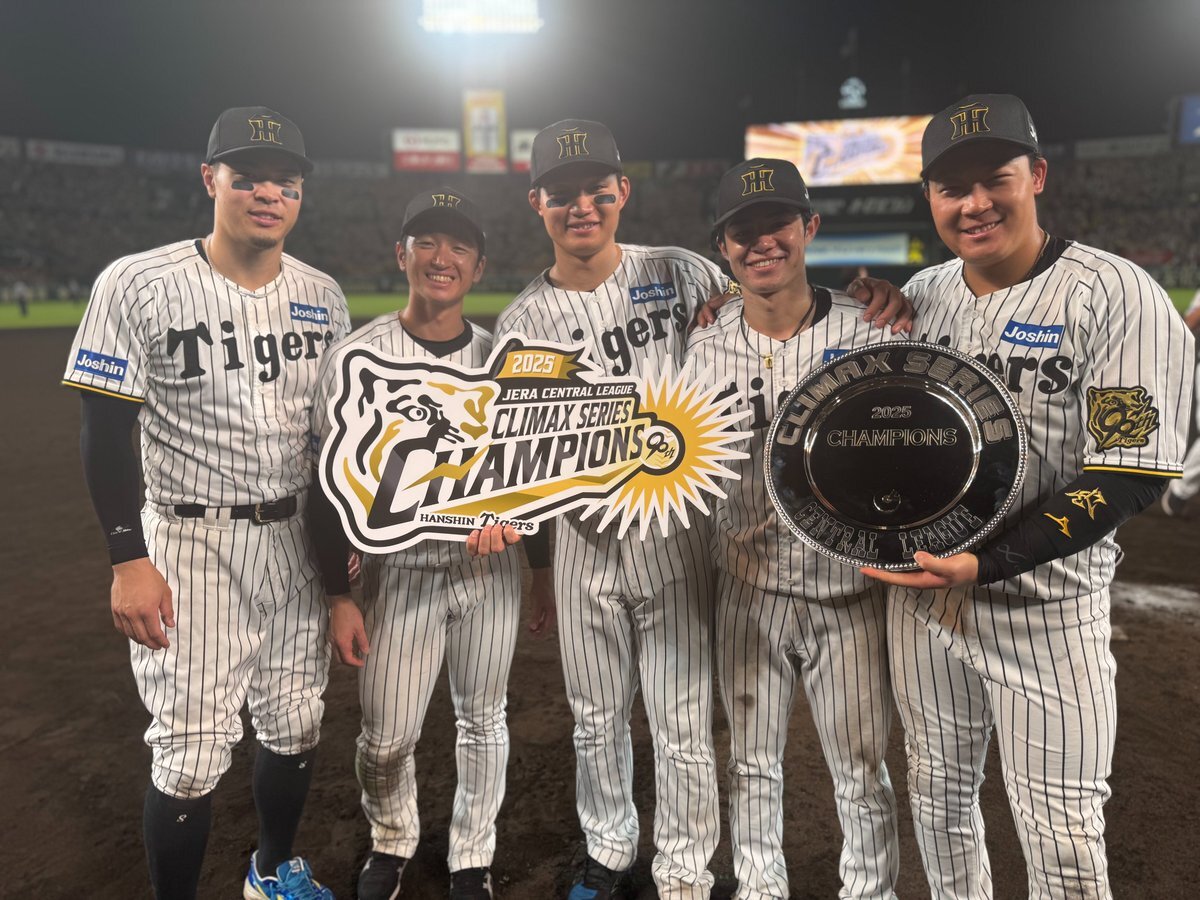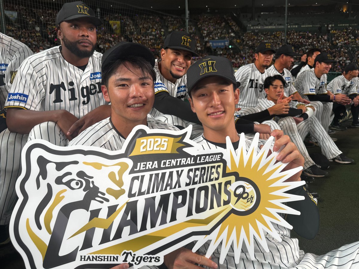 昨日、「2025 JERA クライマックスシリーズ セ」優勝を決めた直後の選手たち① ▼2025 JERA クライマックスシリーズ セ 特設サイト series.hanshintigers.jp/2025/cs/ ▼SMBC日本シリーズ2025特設サイト series.hanshintigers.jp/2025/ns/ #JERAクライマックスセ #SMBC日本シリーズ2025 #90th #阪神タイガース pic.x.com/pKk5Tw4PP7