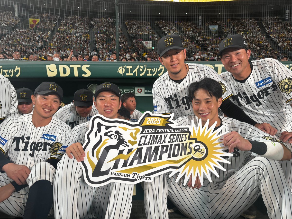 返信先:@TigersDreamlink昨日、「2025 JERA クライマックスシリーズ セ」優勝を決めた直後の選手たち② ▼2025 JERA クライマックスシリーズ ▼SMBC日本シリーズ2025特設サイト #JERAクライマックスセ #SMBC日本シリーズ2025 #90th #阪神タイガース #鼓動を鳴らせ_虎道を進め