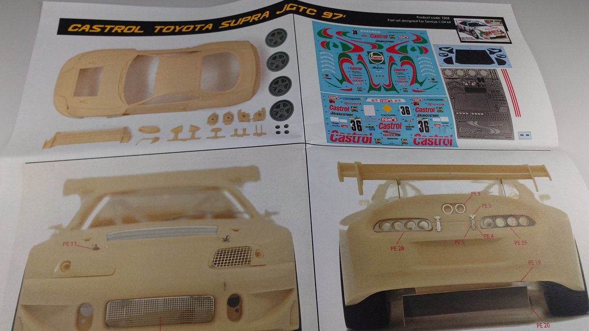 Zoomon 1/24 Castrol Toyota Supura JGTC 97' parts set フォトレポート。と言うことでタミヤのNo.24163 カストロール トヨタ トムス スープラ用の97年JGTC用のトランスキットです。ボディ丸ごとすげ替えのキットですね。レジンパーツ、エッチングパーツ、デカールの構成になってます。#Zoomon #JGTC pic.x.com/hDBiOuXtXS