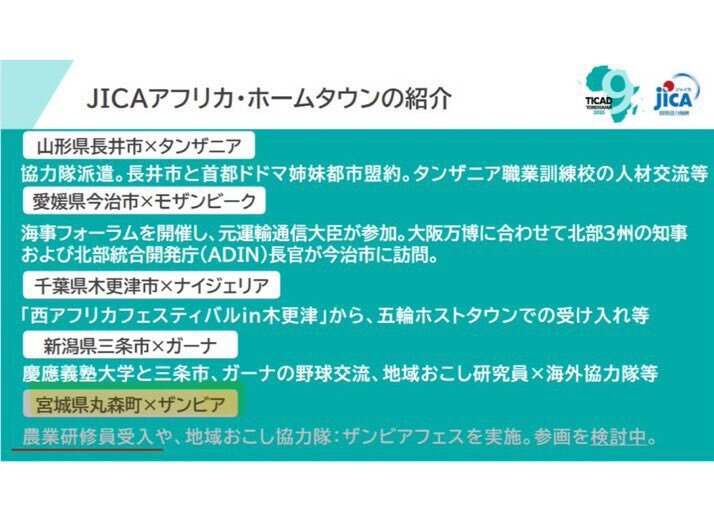宮城県丸森町もJICAアフリカホームタウン計画に参画検討中です。JICAがホームタウン計画を白紙撤回しない限り、木更津市と同じ状況になる可能性があります。 丸森町は8年ほどザンビアと農業技術交流はありますが、今回も同じようにいくとは限りません。