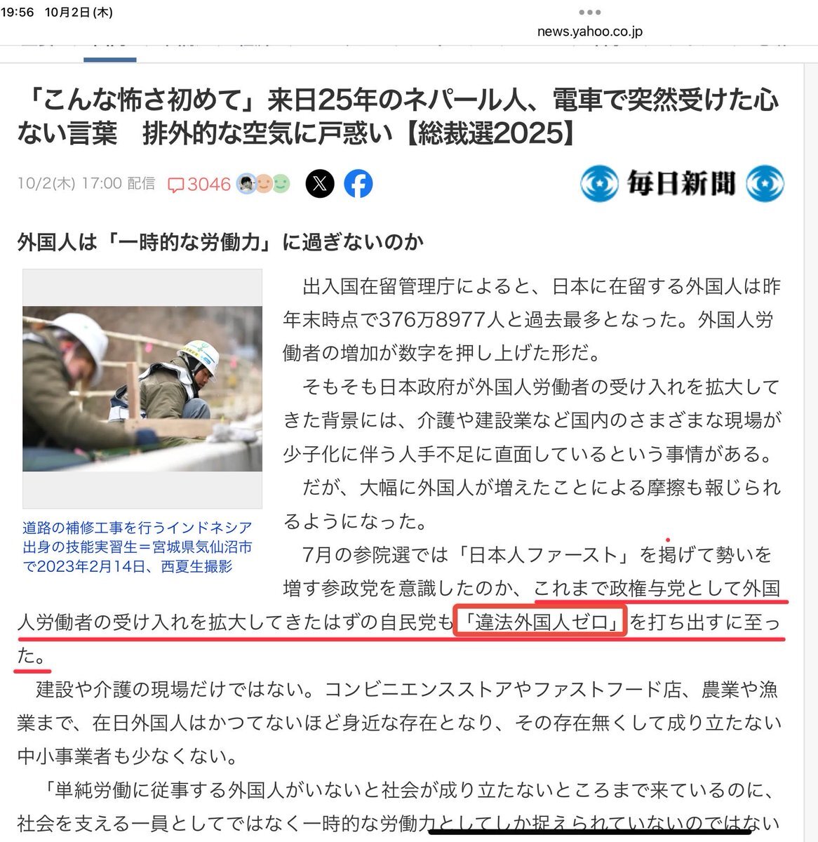 自民党の移民政策の本音とは‼️ 今になって「違法外国人ゼロ」を打ち出したか。という事は昔は「安く働いてくれさへすれば、違法でも何でもOK。」っていう考えだった事だ‼️ 僕たち国民の安全や治安への影響も、全く考慮されてなかった‼️ #移民政策大反対 #移民政策断固反対 #jica解体して減税の財源に x.com/hodohodode_469…