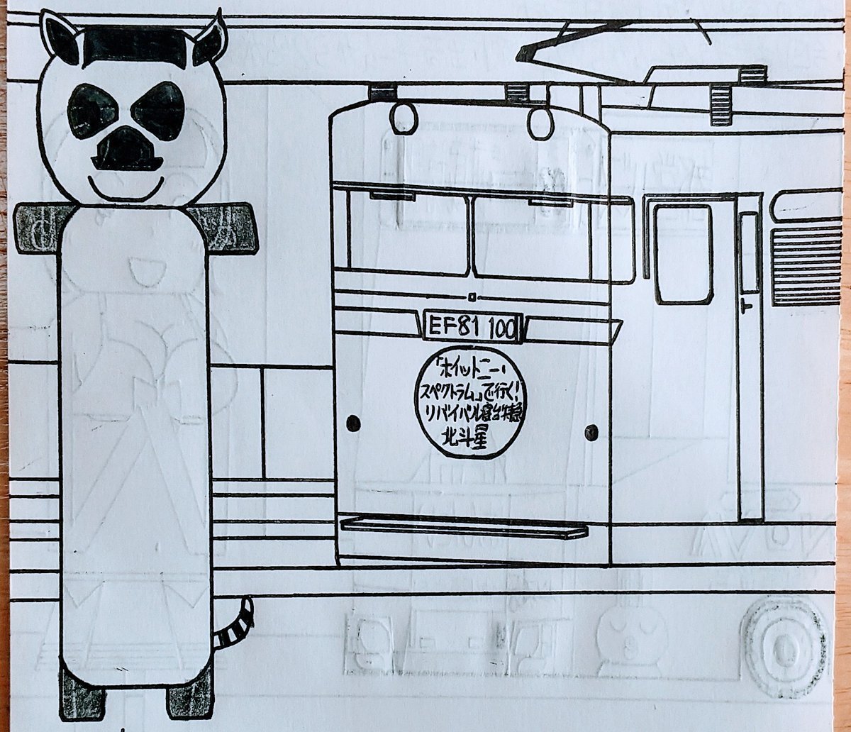@NE9X3FZz3m45961 @HjMQlTBl5Z0ljxa #JR宇都宮線 #JR古河駅 本日描いた #JR東日本EF81形電気機関車 EF81-100号機が牽引する #カジュアルクラス のクルーズトレイン「ホイットニー・スペクトラム」による、リバイバル寝台特急北斗星です。 pic.x.com/mqJvgSu3ak