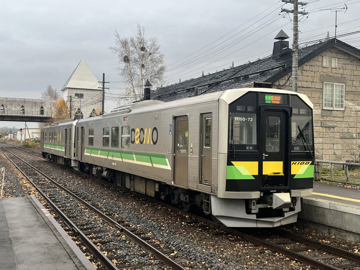 今日の富良野線富良野行き723D H100-72+H100-78 今日は小雨の美瑛駅で撮りました🫡🫡 (7:14着、7:20発) #JR富良野線 #H100形 #DECMO #美瑛駅 pic.x.com/Ig92KLXYmL