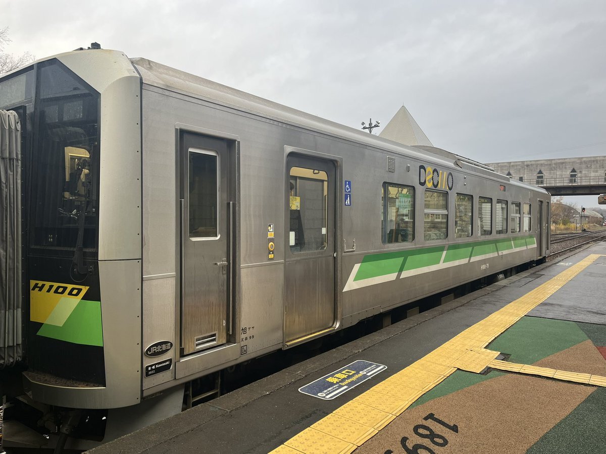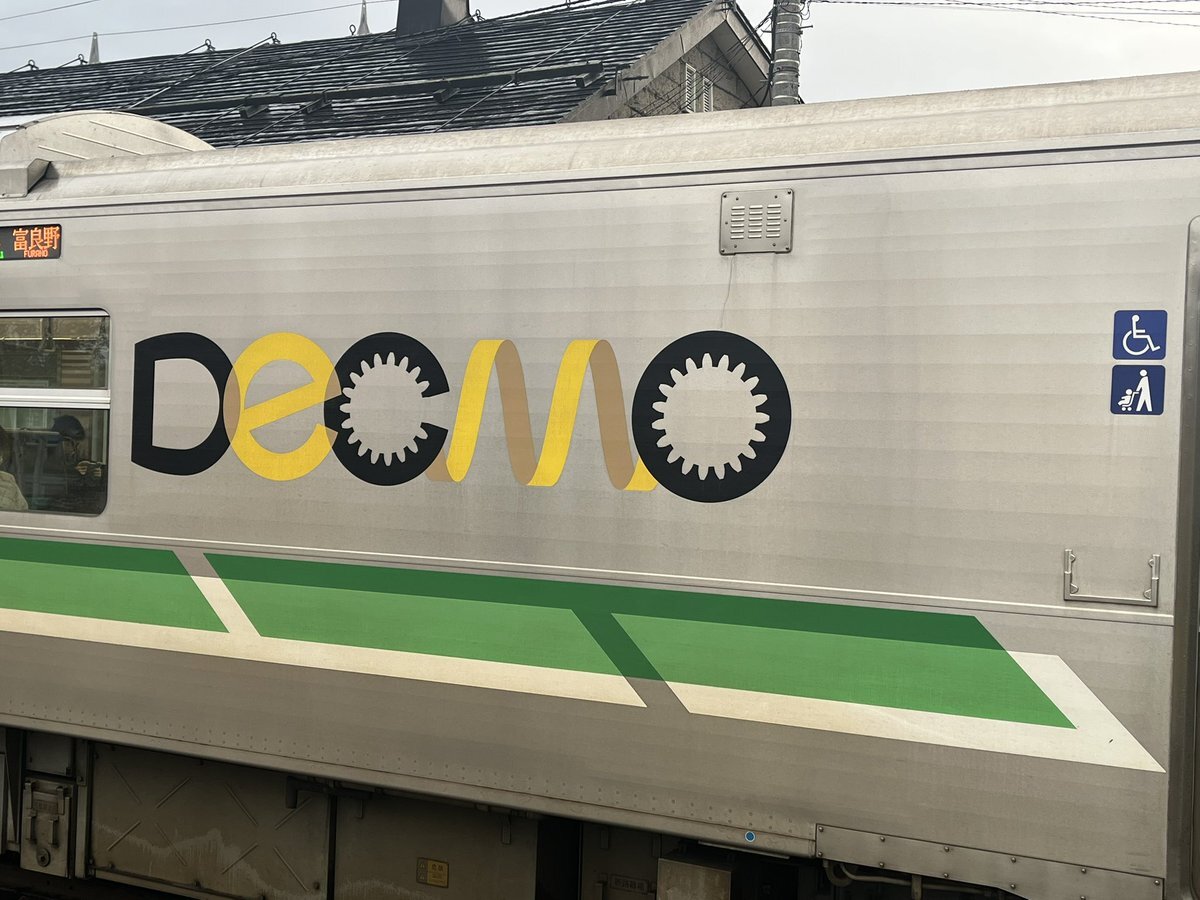 H100形の"DECMO"ロゴ デカいのは片側だけなんですね😆 (今朝、美瑛駅にて) #JR富良野線 #美瑛駅 #H100形気動車 #DECMO pic.x.com/zabfx5AoKi