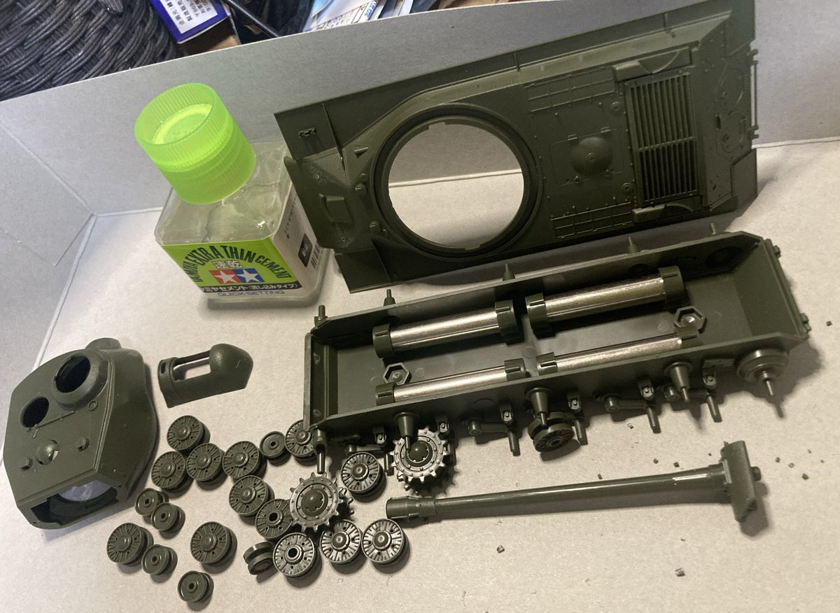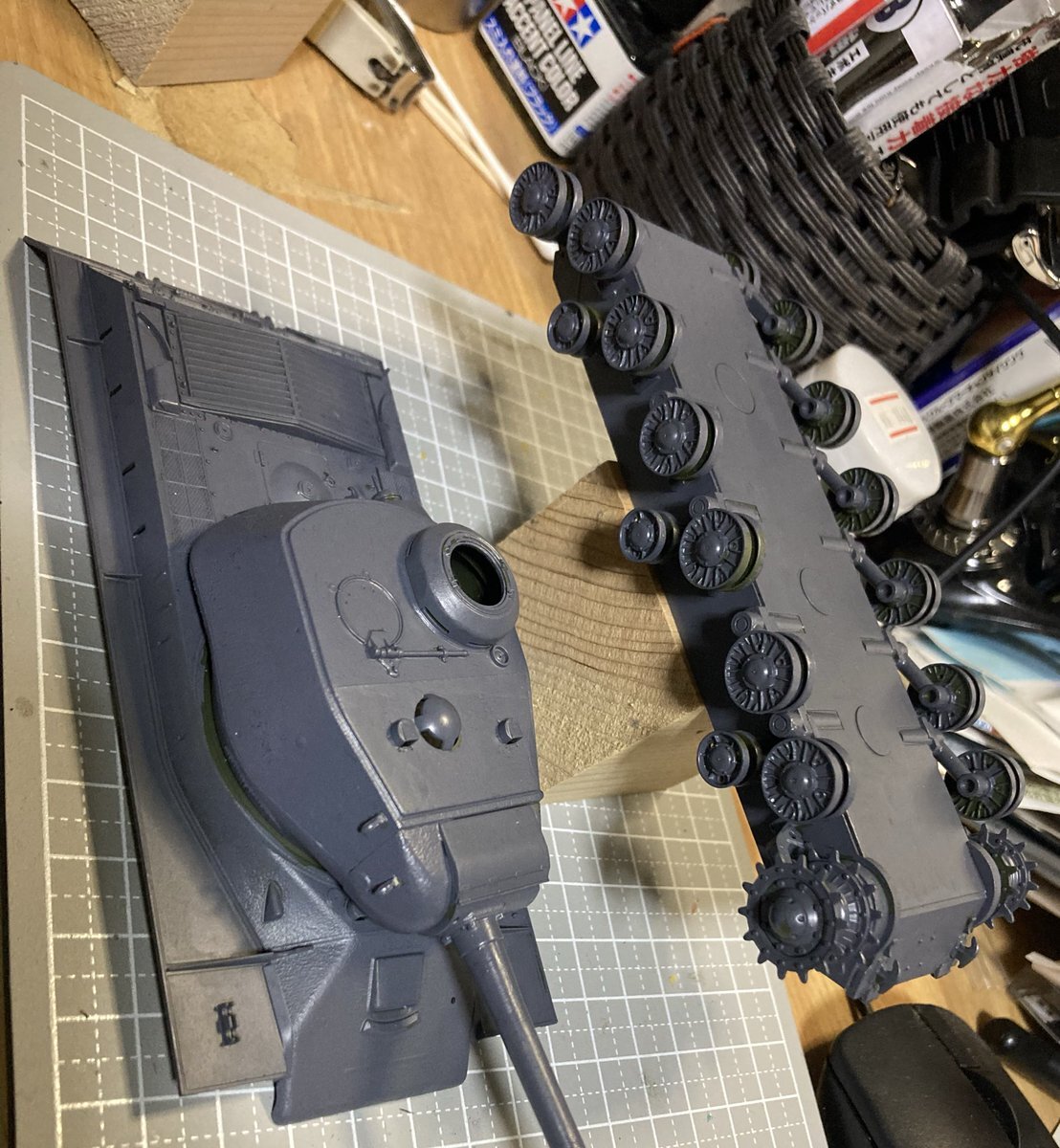 筆で広い範囲を塗れるものを、ということでソビエト戦車に手をつけます。 x.com/uni_ojisan/sta…