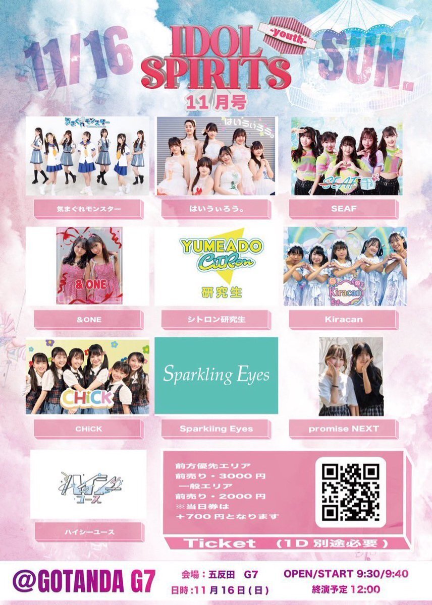 明日は‼️‼️ 11/16(日) IDOL SPIRITS 場所:五反田G7 🎟 t.livepocket.jp/e/gasvh Kiracan 出演します🍬 よろしくお願いします🩷 #Kiracan #モニベル #キッズアイドル