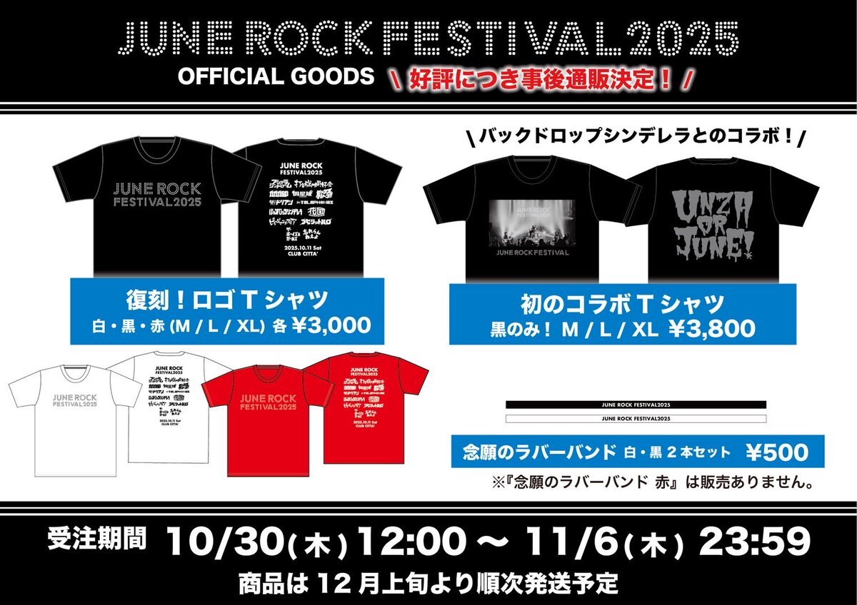 【🌟グッズ再販決定🌟】 JUNE ROCK FESTIVAL 2025 オフィシャルグッズが大好評につき なんと、再販決定‼️🔥 この機会にぜひ手に入れてください💥 【🛍️販売URL🛍️】 ldandkshop.com/view/category/… 【⚠️受注期間⚠️】 10/30(木)12:00〜11/6(木)23:59 【📦発送予定📦】 12月上旬より順次発送 #JUNEROCK